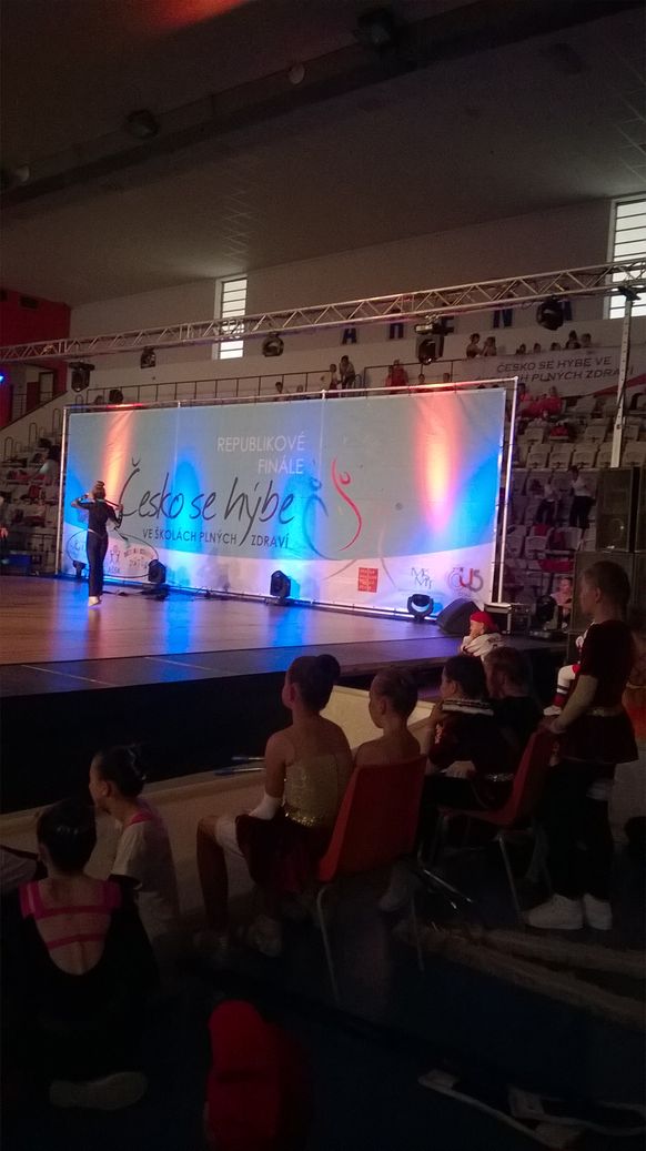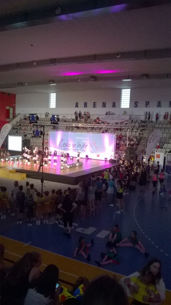 V Praze jsme spěchali do Arény Sparta, tam již byl zahájen 6. Ročník republikového kola Česko se hýbe… Již od počátku jsme sledovali, že úroveň soutěže je na velice vysoké úrovni. Nadešel čas našeho vystoupení. Děti svůj taneček předvedli moc hezky a všem se moc líbili. Umístění nebylo na medaile, ale přesto jsme byli s výkonem moc spokojeni. Protože bylo obrovské teplo, vyrazili jsme hned po vyhlášení do Autocampu Kotva k Vltavě. Po ubytování a občerstvení se vyrazilo k Vltavě. Děti pozorovaly labutě, kačenky a opláchli jsme si nožky.