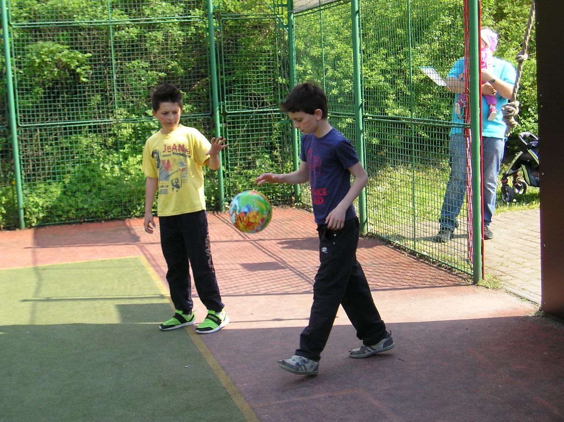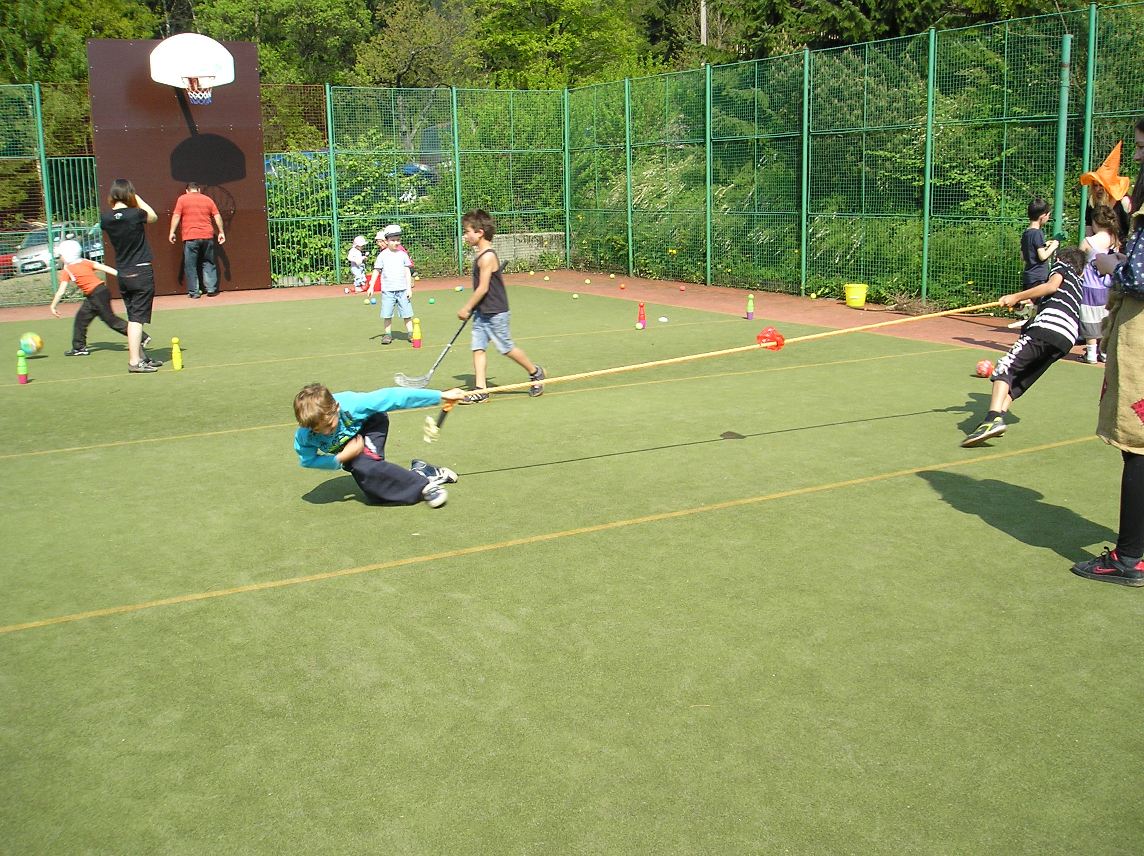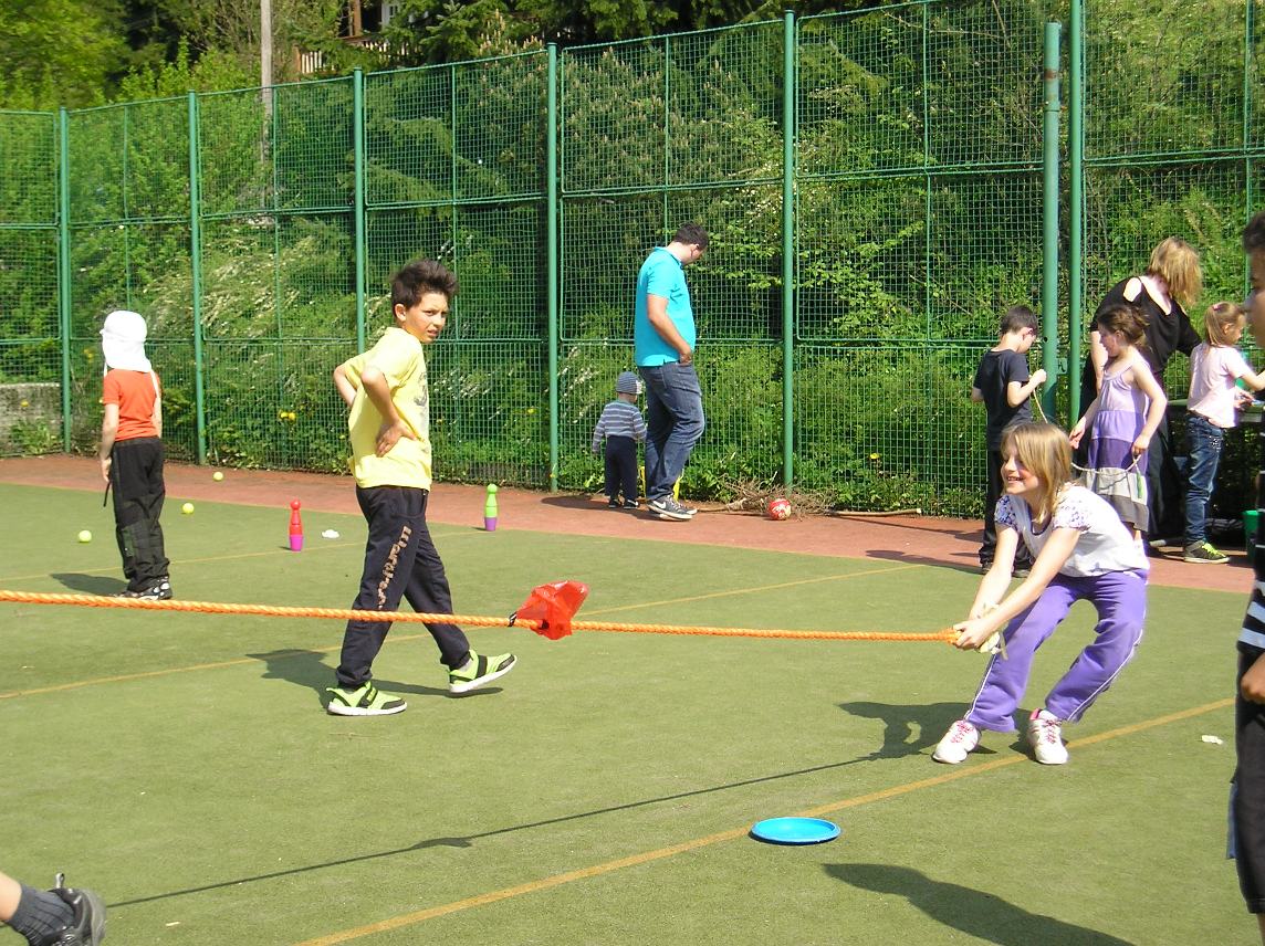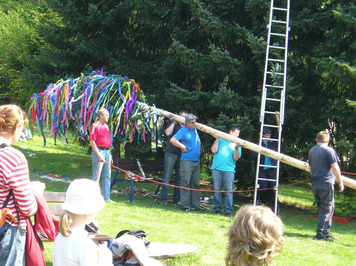 Procházeli jsme se mezi nimi, některé obdivovali. Po obědě a pitném režimu se vydali na další cestu, která vedla k penzionu Sluníčko. Pro děti tam byly připraveny sportovní aktivity-přetahování lanem, házení na koš, střelba míčky na bránu, zdolávaní horolezecké stěny. Velkým zážitkem pro nás bylo stavění máje.