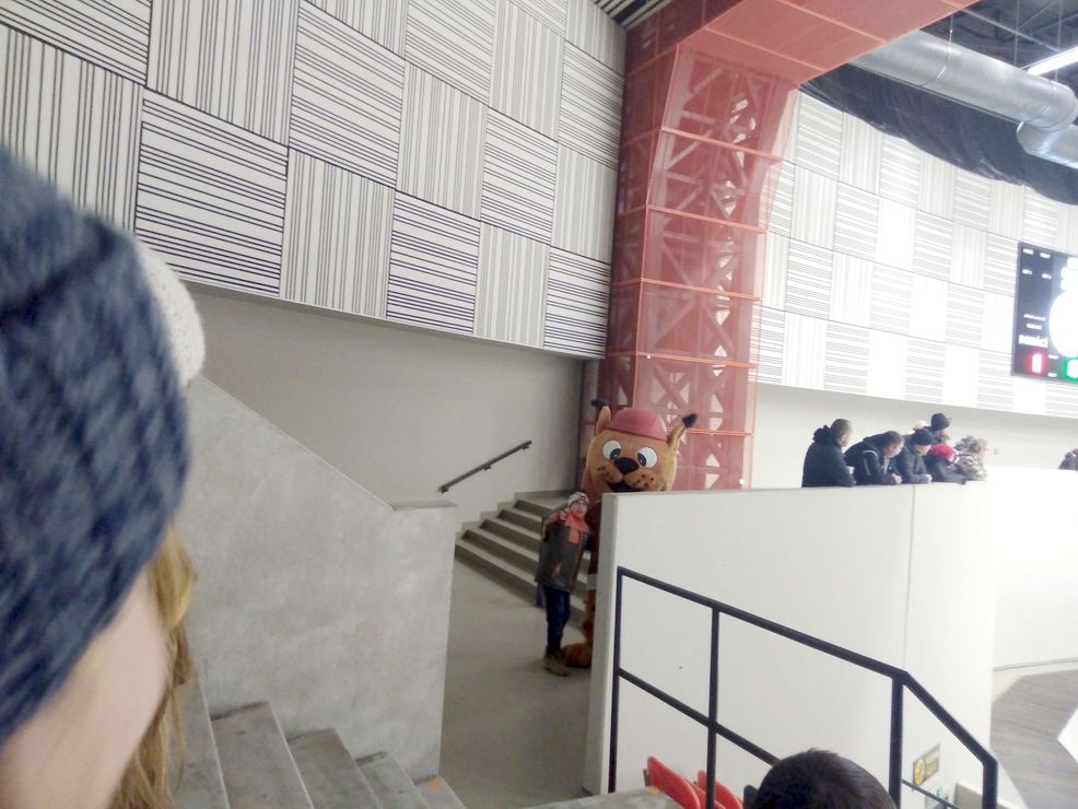 O přestávce jsme měli možnost shlédnout exhibici malých začínajících malých hokejistů anebo se účastnit soutěže zorganizované pro naše děti. Soutěžili jsme v hodu pukem na čáru a jako odměnu jsme získali 2 poukazy do KFC na občerstvení kterého po skončení zápasu hned využily. I pro naše tety a strejdy se výhra našla. Děkujeme :-)