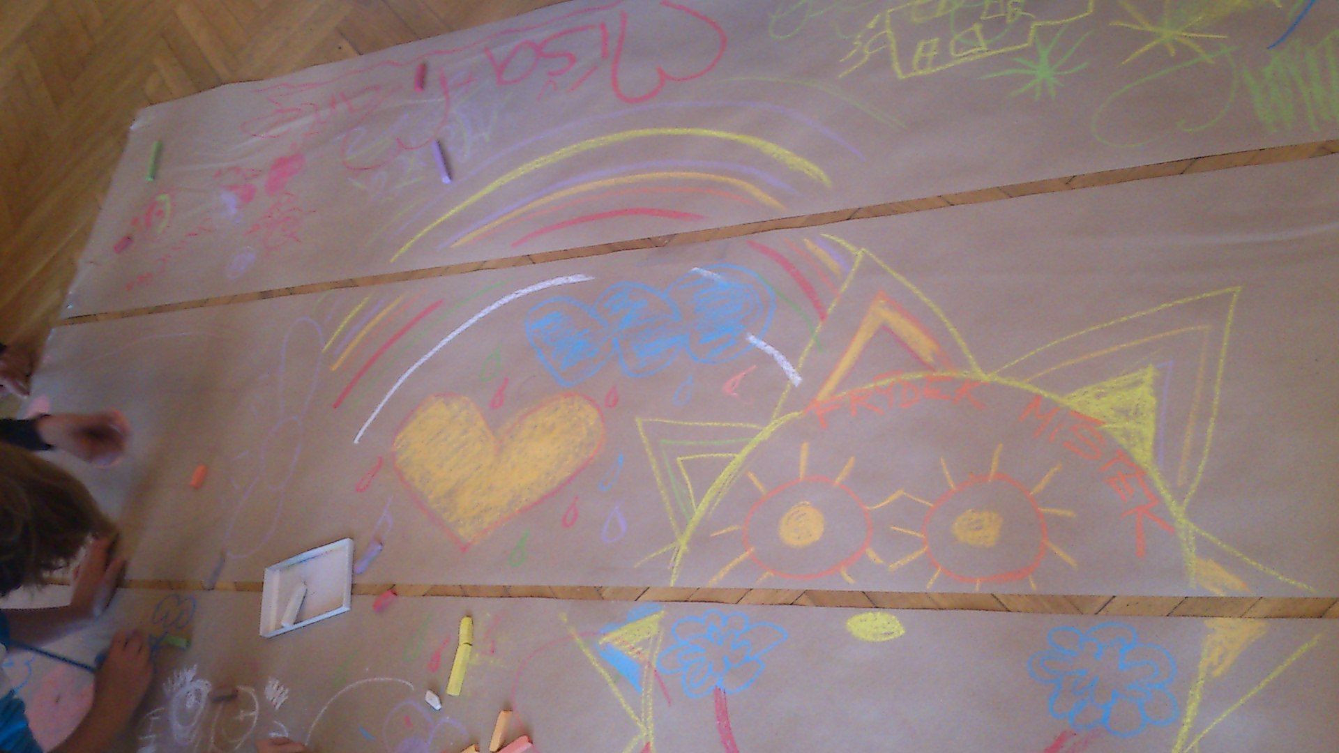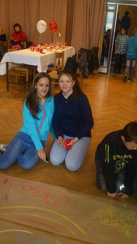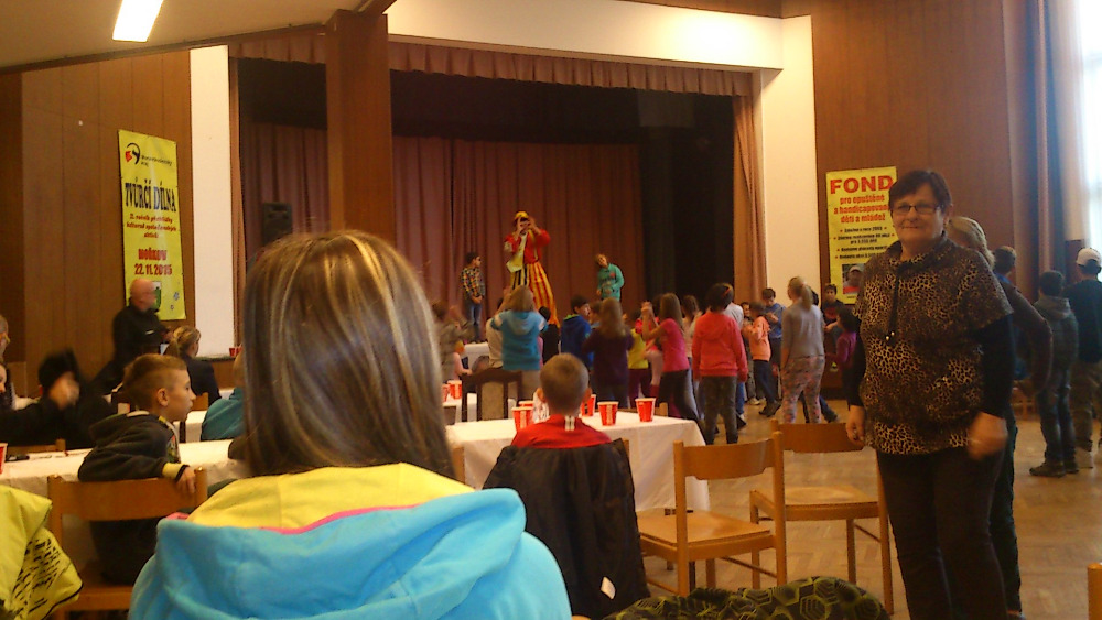 Po příjezdu na místo určení nás pořadatelé velmi mile přivítali a uvedli do sálu kulturního domu, kde na nás čekalo malé občerstvení s bohatým kulturním programem. Jako první měl připraveno vystoupení pan Adolf Dudek, známý ilustrátor především dětských knih. Naši pozornost si velmi rychle získal velmi vtipně sestaveným programem, kde nás učil kreslit, dával nám hádanky, recitoval říkadla. Na konci jeho vystoupení dostali prostor všichni v sále – na zemi byly nataženy dlouhé pásy papíru, kde se mohl pomocí barevných kříd vyřádit kdokoliv, kdo měl chuť.