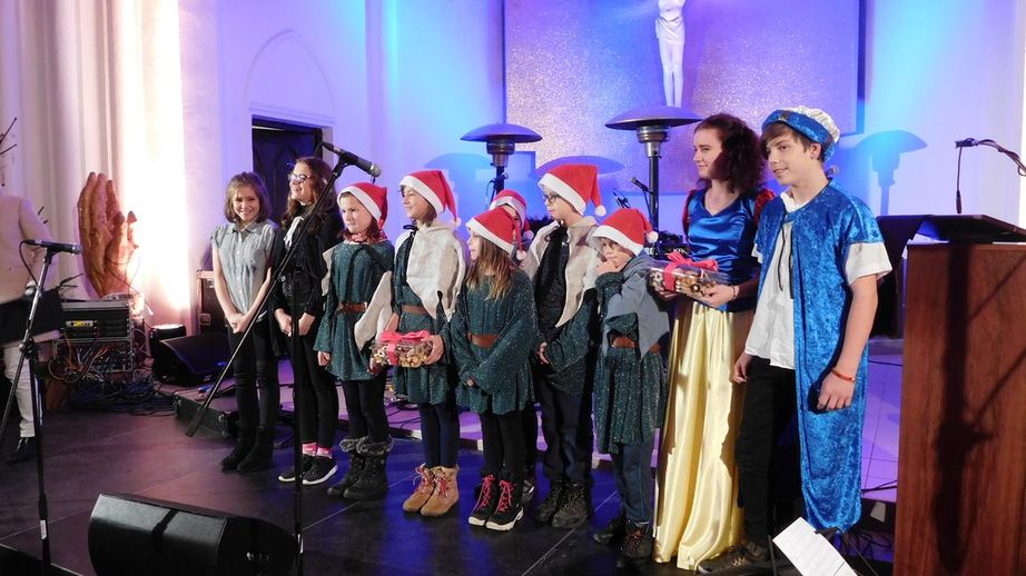 Po příjezdu do kostela jsme se letmo seznámili se svým malým pódiem, kde se mělo odehrát naše divadlo a poté jsme se šli převléct do kostýmů. V 19:00 už před zaplněným slavnostně nasvíceným kostelem vše odstartovalo zpěvem dětského sboru Korálky z 8.ZŠ a poté přišla řada na naše divadelní vystoupení o Sněhurce a sedmi trpaslících. Myslím, že se nám to velmi povedlo. V představení totiž bylo i několik vtipných „hlášek“, kterými jsme rozesmávali publikum. Po představení se nám dostalo potlesku a mohli jsme si už v poklidu vychutnat koncert skupiny Hradišťan & Jiří Pavlica, kteří byli hlavními hudebními aktéry chladného večera. Koncert se protáhl až do noci a po něm jsme trochu zmrzlí, leč spokojení se odjeli uložit ke spánku do našeho domova.