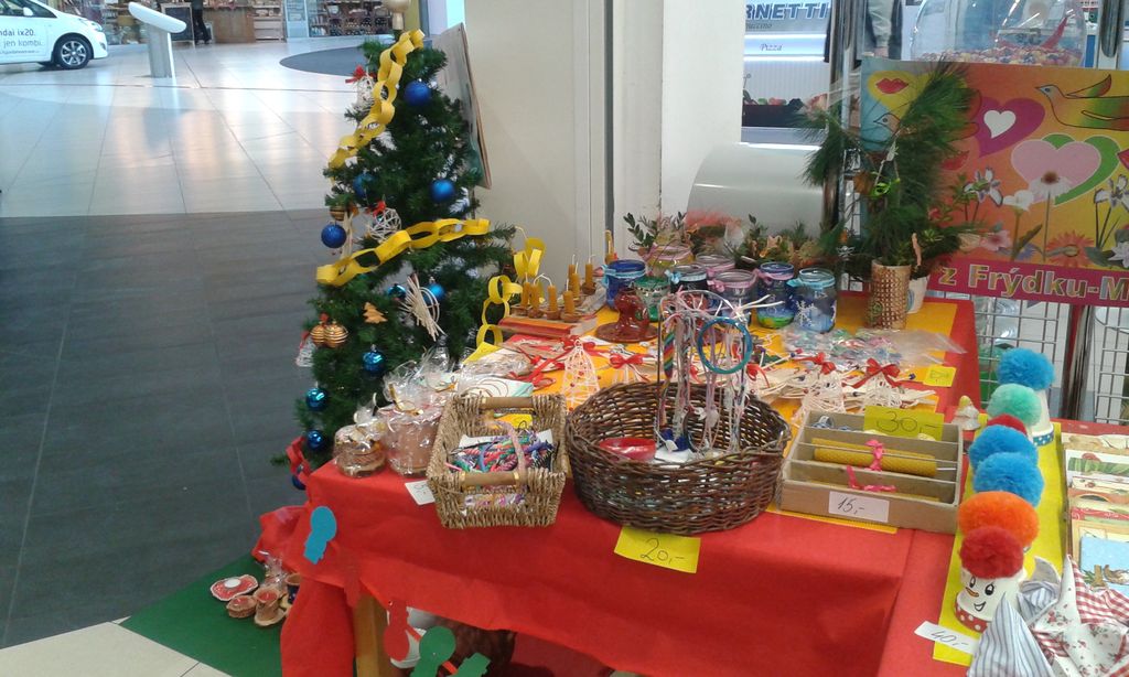 Náš Jarmark s Albertem se konal dne 11. 12.2015 v Hypermarketu Albert Ostrava. Tento společný projekt Nadačního fondu Albert a organizace Spolu dětem, o.p.s. umožnil našim dětem prodávat ve svém stánku vlastnoručně vyrobené výrobky z keramiky, papíru a vlastně všeho možného, co se nám líbilo.