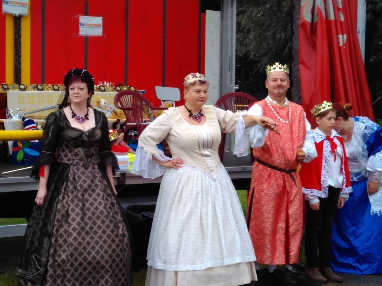 A už je to tady! Vyhlášení nejhezčí masky rytíře a princezny, kde jsme sice své zástupce měli, ale o fous unikli výhře. Z menšího zklamání nás ale zcela vytrhlo ocenění toho dětského domova, který vyrobil nejkrásnější korunu a štít. Radujeme se z 2. místa (z 16 přihlášených soutěžících). Za naši práci dostáváme diplom, meč, korunku a úžasnou plaketu s podobiznou Karla IV. – i s certifikátem pravosti. Jsme radostí bez sebe, plni dojmů a pomalu se loučíme jak s pořadateli, tak s ostatními dětmi. V zápalu her jsme si ani nevšimli, že nám celou tuto dobovou akci víceméně poprchávalo.