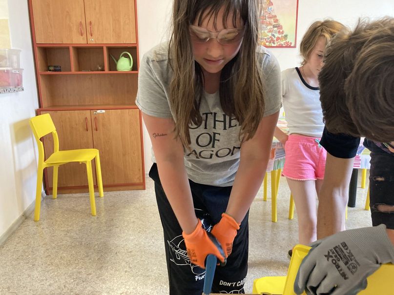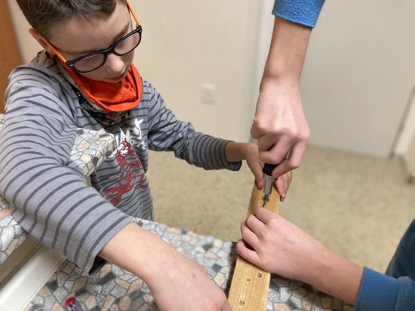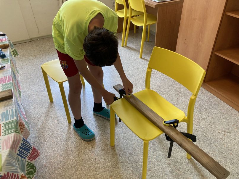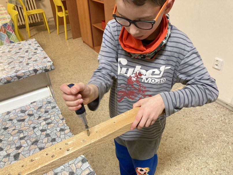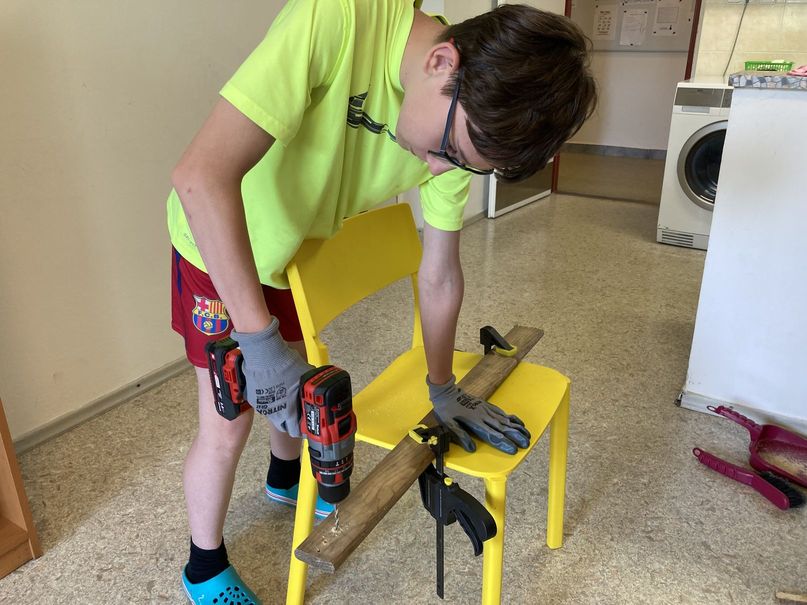 Během školního roku 2021-2022 jsme natírali zahradní nábytek, čistili vodovodní odpady, opravovali díry a praskliny ve stěnách, malovali, procvičovali šroubování, řezání a vrtání, pletli pomlázky, postavili trampolínu a opravovali kola.