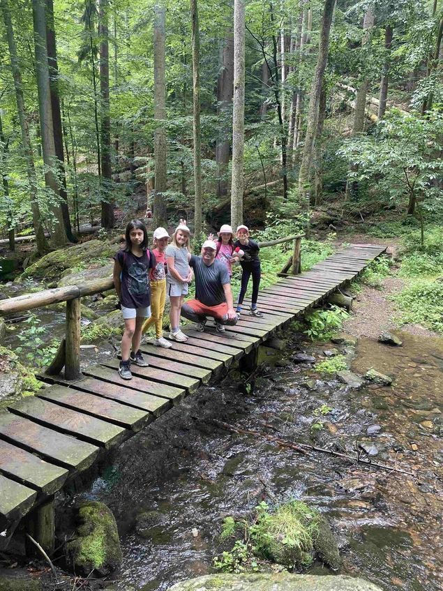 Společně s téměř třicítkou dětí z našeho dětského domova jsme tu strávili šest nádherných dní plných smíchu, her a společných zážitků. Šest dní v přírodě přineslo spoustu krásných chvil. Díky proměnlivému počasí jsme trávili čas jak venku, tak uvnitř chaty. Na čerstvém vzduchu jsme hráli fotbal a badminton, chodili na procházky, stavěli hráze u potůčku nebo parádní domeček v lese. Nechyběla ani návštěva nedalekého sportovního areálu, kde jsme si vyzkoušeli průlezky, venkovní posilovnu i fotbalové hřiště.  Večer jsme poseděli u táboráku a opekli párky. A ti nejodvážnější z nás dokonce přespali ve stanech – pod otevřeným nebem a hvězdami nad hlavou. Když přišel déšť, nezaháleli jsme – nastal čas na deskové hry, karty a hlavně na vaření. Děti se proměnily v malé kuchaře a společně jsme si připravovali jídla, na která jsme měli chuť – od výborných polévek a masíčka, bramboráků až po sladké tiramisu. Vrcholem našeho pobytu byla patnáctikilometrová túra na Rešovské vodopády. Všichni ji zvládli s úsměvem, i když jsme se vraceli lehce unavení. Týden utekl jak voda a my už vymýšlíme, kam bychom mohli vyrazit za dobrodružstvím příští rok. Snad nám to vyjde.