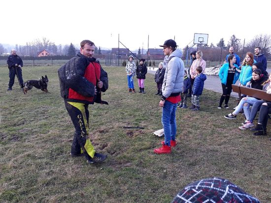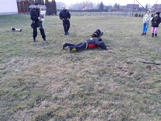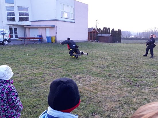 To však nebylo pro děti tak atraktivní, jako následné představení policejní výstroje a výzbroje, kterou si děti mohly i vyzkoušet. Mnozí si také nechali provést sejmutí otisků prstů. Na hřišti jsme zhlédli práci psovoda a služebního psa. Na závěr děti dostaly mimo hraček i omalovánky a pexesa s policejní tématikou. Všichni si to odpoledne hezky užili a nadšení dětí je zřejmé i z fotografií.