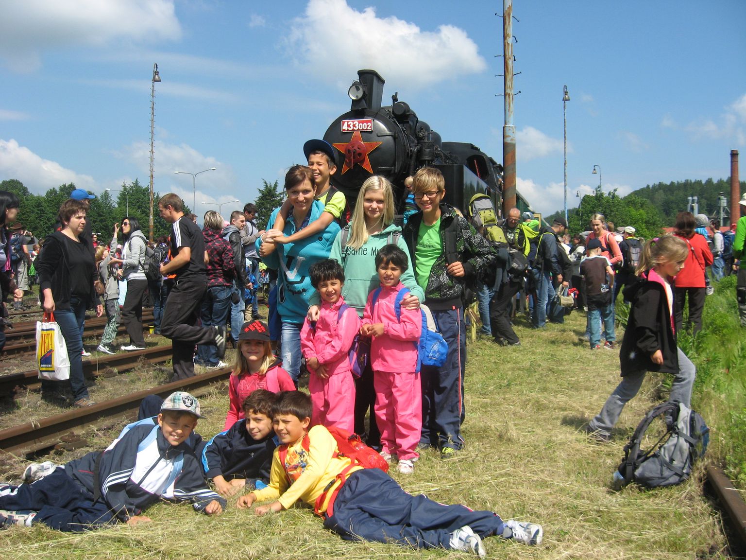 Na vlakové nádraží jsme přijeli autobusem MHD, jízdenky už máme koupeny a tak čekáme na příjezd historického vlaku. Společnost nám dělala skupina muzikantů a spousta lidí, zejména rodičů s dětmi.