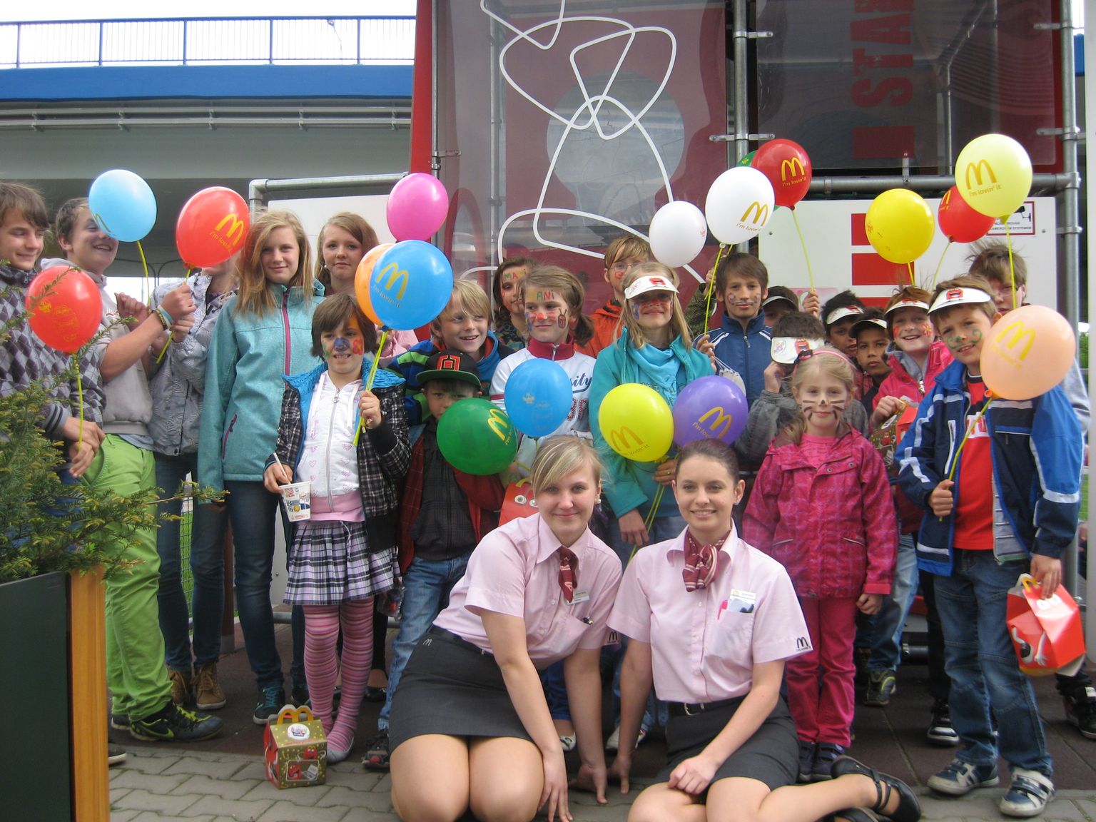 Místecký McDonald nás pozval na zábavné odpoledne. Po příchodu jsme byli slečnami usazeni k vybraným stolům. Pak přišel klaun a pozdravil nás, my odpověděli hlasitým AHOJ. Šprýmoval s námi,