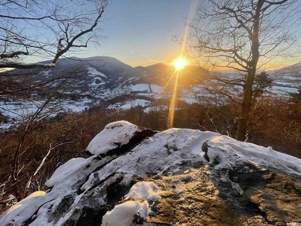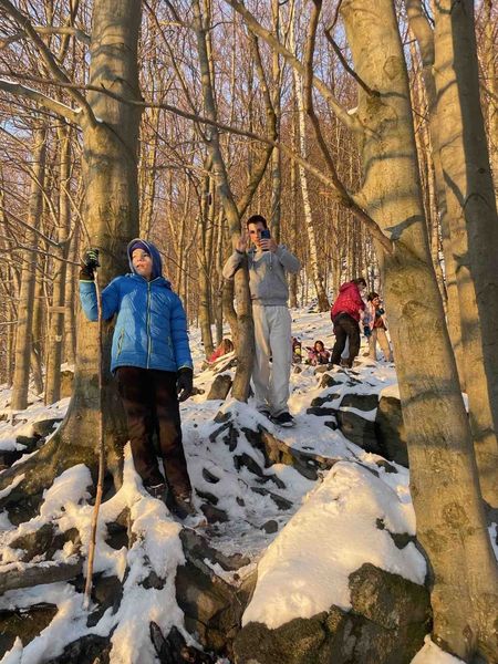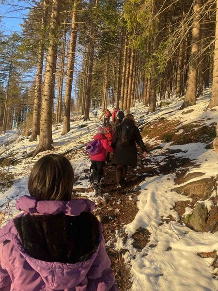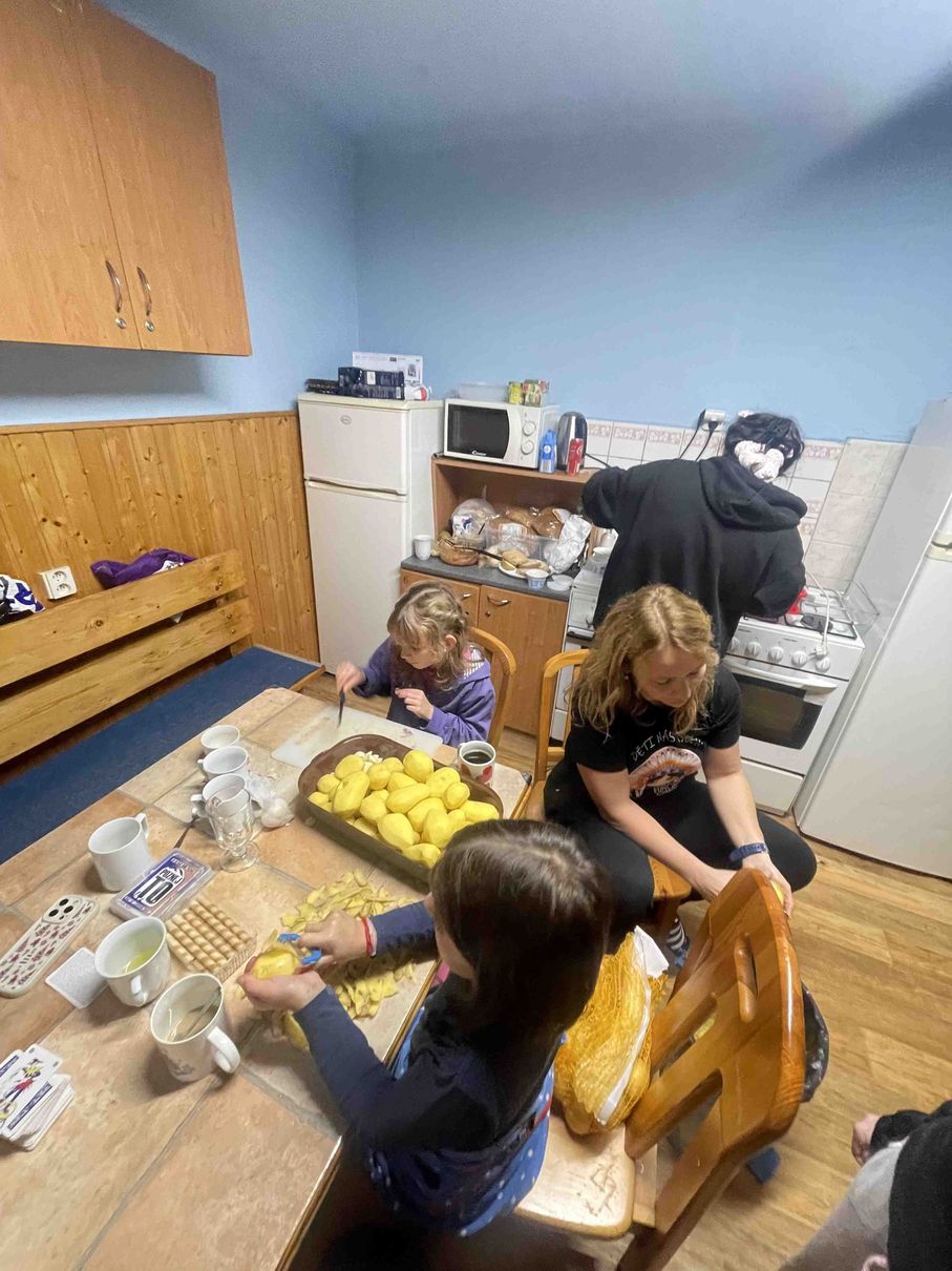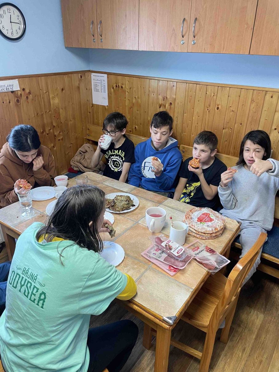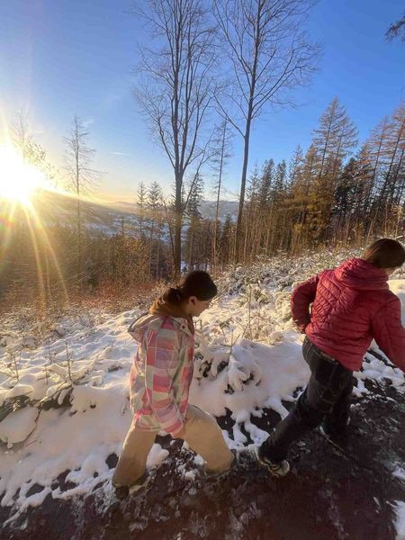 Většina z nás měla zážitkovou cestu dvoupatrovým vlakem, hrstka obětavců jela autem, aby nás přivítala skvělou večeří, kterou zvládli za tu dobu, co ostatní cestovali, ukuchtit. No a pobyt, plný vaření, zážitků, wellness a v neposlední řadě dokonce i sněhu, začíná. Všichni jsme se během tohoto krátkého času stačili dosytosti vyřádit – malé děti nejvíce těšila sněhová pokrývka, která se jako zázrakem objevila pouze po dobu našeho pobytu. Ty větší děti pak svedly lítý boj v bowlingu a asi se nepletu, pokud řeknu, že úplně všichni si to užívali v bazénu, kterému nechyběl tobogán ani vířivka. Pomyslnou třešničkou na dortu byly nádherné výhledy na okolní hory a krásný západ slunce, čímž jsme se kochali při procházce na Medvědí skálu.