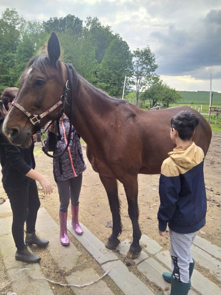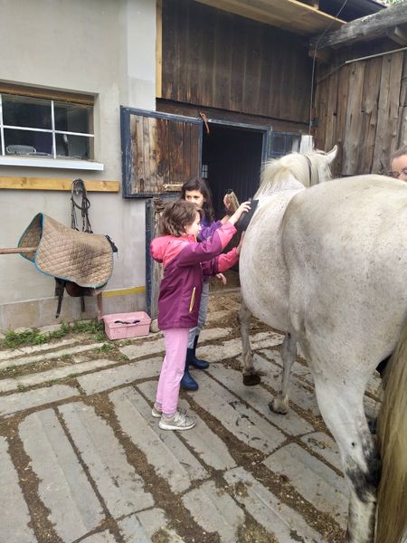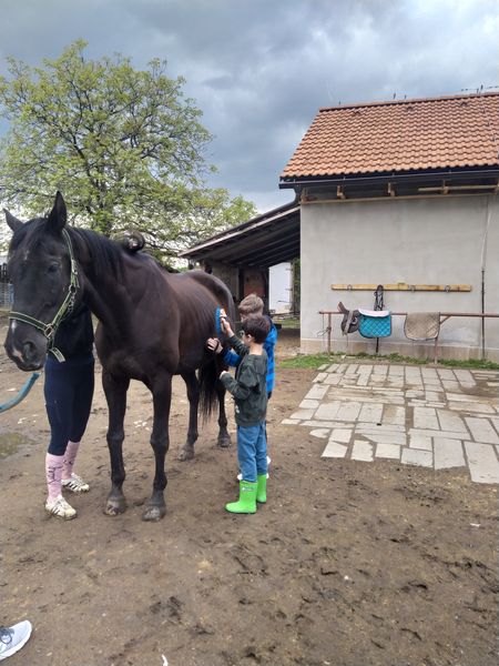 Posledního května nás cesta zavedla do Skalického dvora, kde se děti velmi těšily na jejich mnohdy první seznámení tváří tvář s koňmi. Po příjezdu dětí na ranč jsme se seznámili a následně jsme se rozdělili do skupin, které byl přidělen kůň k čištění a zvelebování pomocí kartáčů.