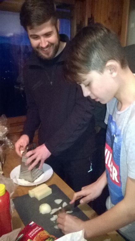 Odpoledne proběhl odpočinek a nákup potravin na večeři a další den. Chata totiž byla z větší části obydlená hochy a těm na horách opravdu chutnalo.
