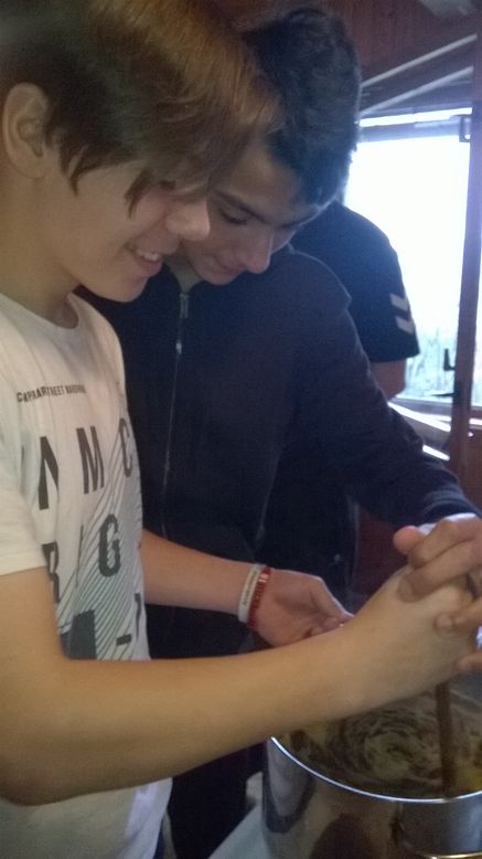 V sobotu bylo ošklivé počasí, pořád pršelo a to nás trochu potrápilo. Nic méně jsme si řekli, že to nevadí a uspořádali jsme si program dle toho. Dopoledne zabrala příprava oběda – gulášová polévka a zapečené těstoviny s brokolicí. Mňam, moc se Kuchaříkům povedla a musím říci, že tentokrát kuchyň ovládli hoši v čele se strejdou Heinzem. Všem moc chutnalo a snědlo se do poslední nudličky. Na děvčata pak zůstalo nádobí, a toho taky tedy bylo dosti.