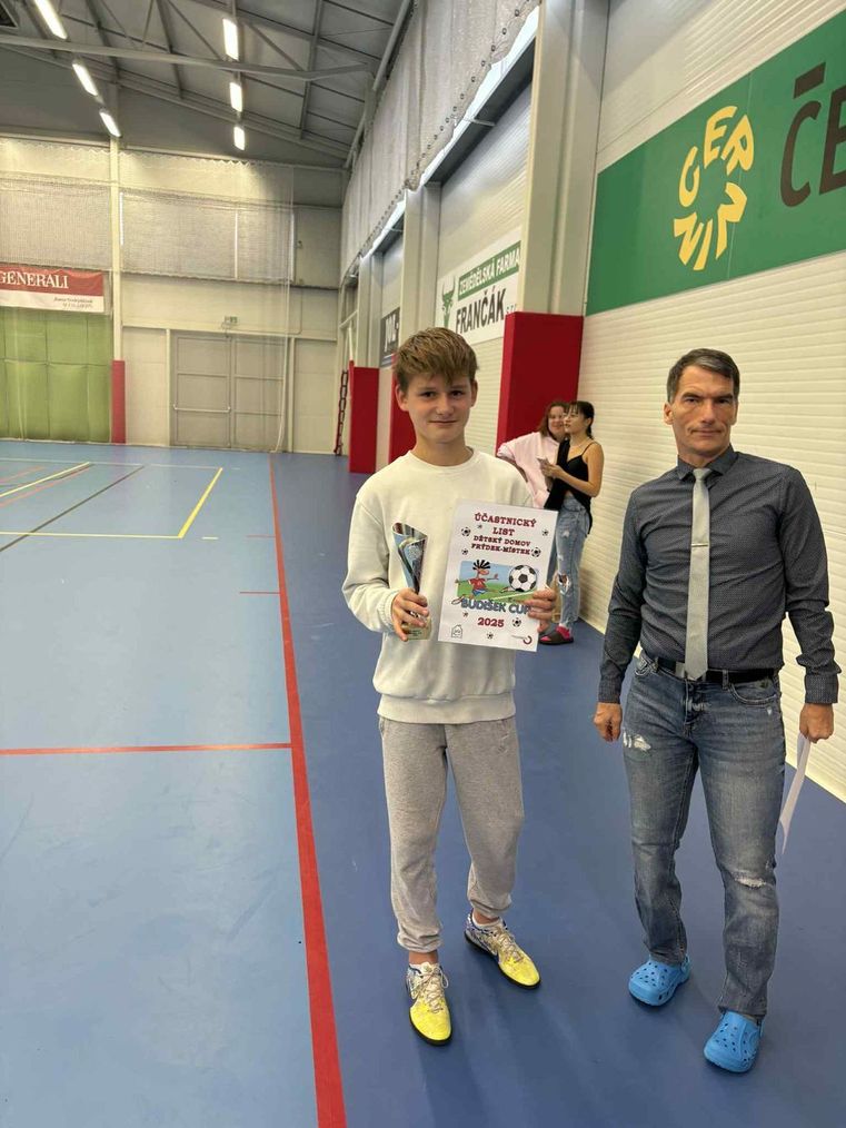 … naposledy jsme se zde představili před dvěmi lety, kdy se nám podařilo vybojovat krásné 3. místo. Po dvouleté pauze se děti těšily, že si opět zahrají s týmy z jiných dětských domovů. Letos se do turnaje zapojilo sedm týmů, které mezi sebou soupeřily systémem každý s každým. To znamenalo, že všechny týmy měly stejné podmínky a o konečném umístění rozhodovala především vytrvalost, týmová spolupráce a bojovnost. Naši hráči nastoupili do všech zápasů s velkým odhodláním, chutí do hry a touhou uspět. Během dne jsme čtyři utkání vyhráli, jedno skončilo remízou a jen jedno jsme prohráli. Díky výborným týmovým výkonům, skvělým zákrokům našeho brankáře a obětavé hře všech členů týmu se děti nakonec umístily na vynikajícím 2. místě. Odvezly si tak stříbrný pohár, spoustu radosti, hrdosti a krásných vzpomínek na den plný sportu a soutěžního nasazení. Zvláštní ocenění si zaslouží náš kapitán, který byl na konci turnaje vyhlášen nejlepším hráčem celého turnaje. Jeho nasazení, přehled na hřišti a poctivá práce pro tým byly příkladem pro ostatní spoluhráče.