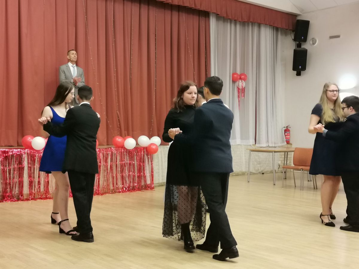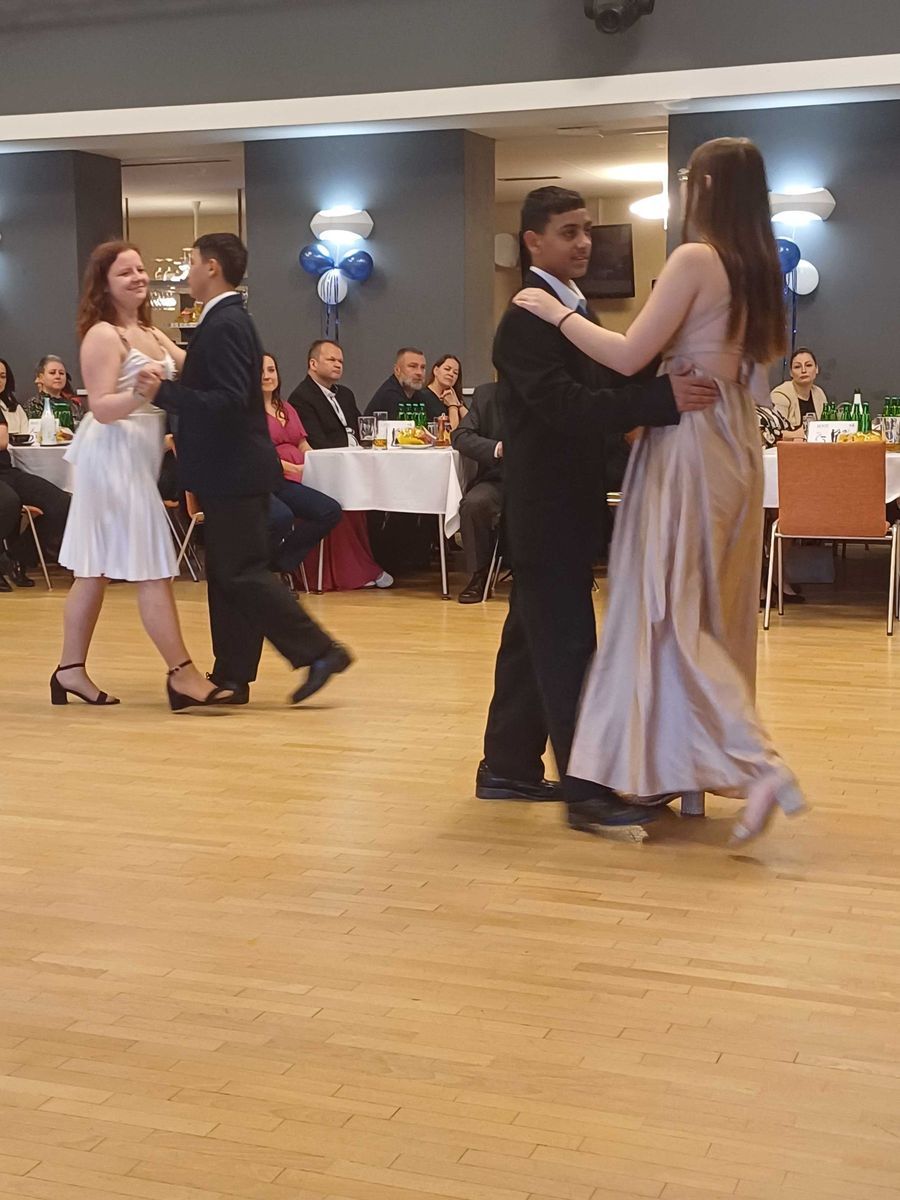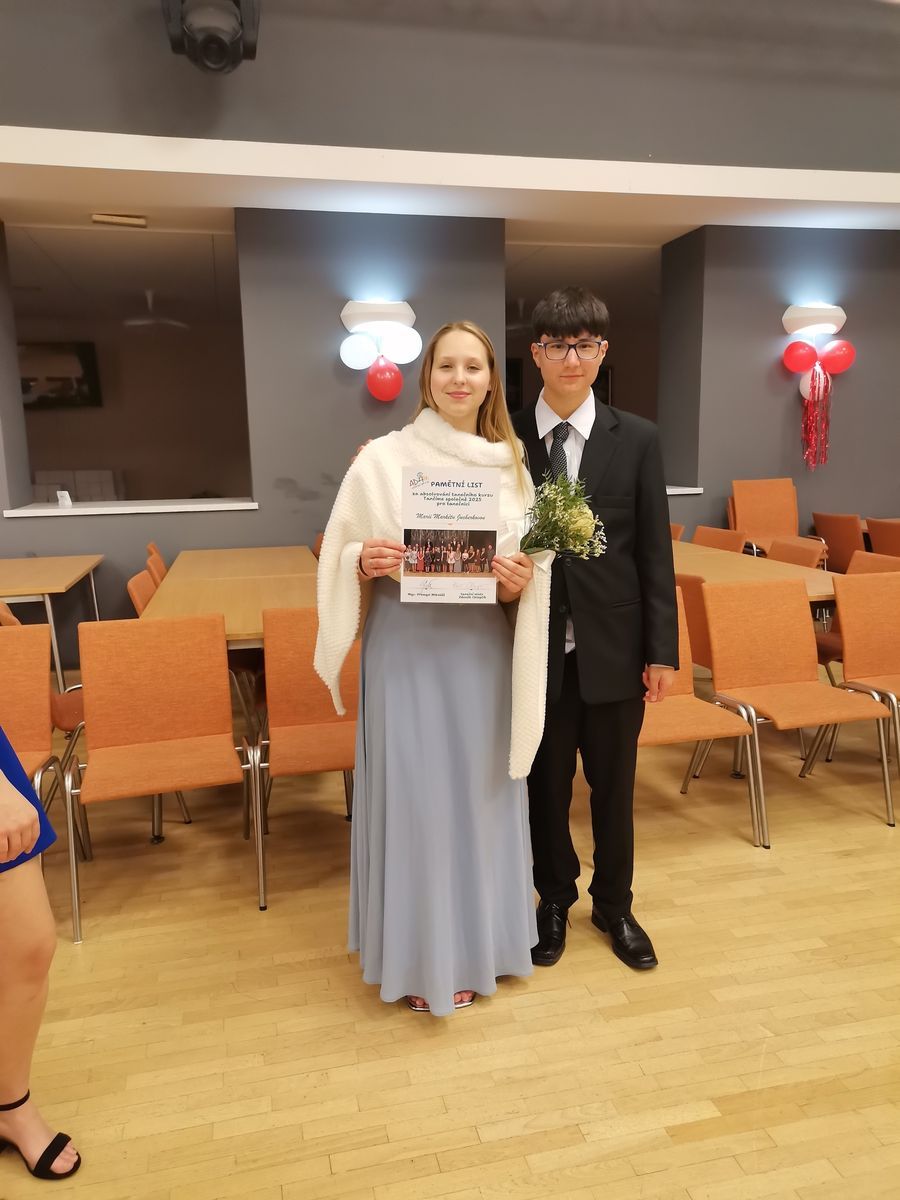 Kurz absolvovala nejen naše děvčata, ale také mládež ze sdružení ADAM a chlapci z DDŠ Těrlicko. Při prvním setkání panovala mezi všemi mírná nervozita, která se hned po absolvování první lekce vytratila. Všichni se na další setkání těšili a zodpovědně se učili novým tancům. Nešlo si nevšimnout velké radosti a těšení se na Mistra Chlopčíka, kterému tedy zaslouženě patří velká poklona. Celkem se účastníci naučili pěti tancům, někdy to šlo dobře, občas to zaskřípalo, ale výsledek byl úžasný a všichni tento taneční kurz zvládli na výbornou, což mohli předvést na závěrečném galavečeru a za svůj výkon sklidili obrovský potlesk. Poslední večer jsme si všichni užili i tancem na moderní hudbu a už teď se těšíme na další v pořadí již pátý ročník kurzu.