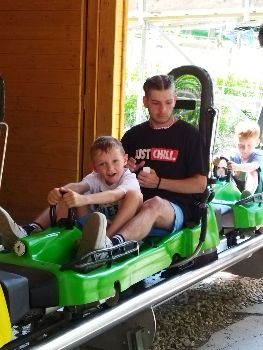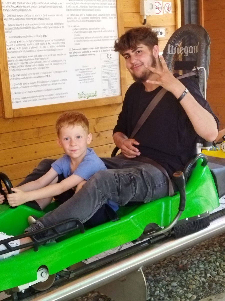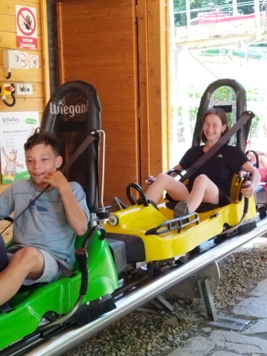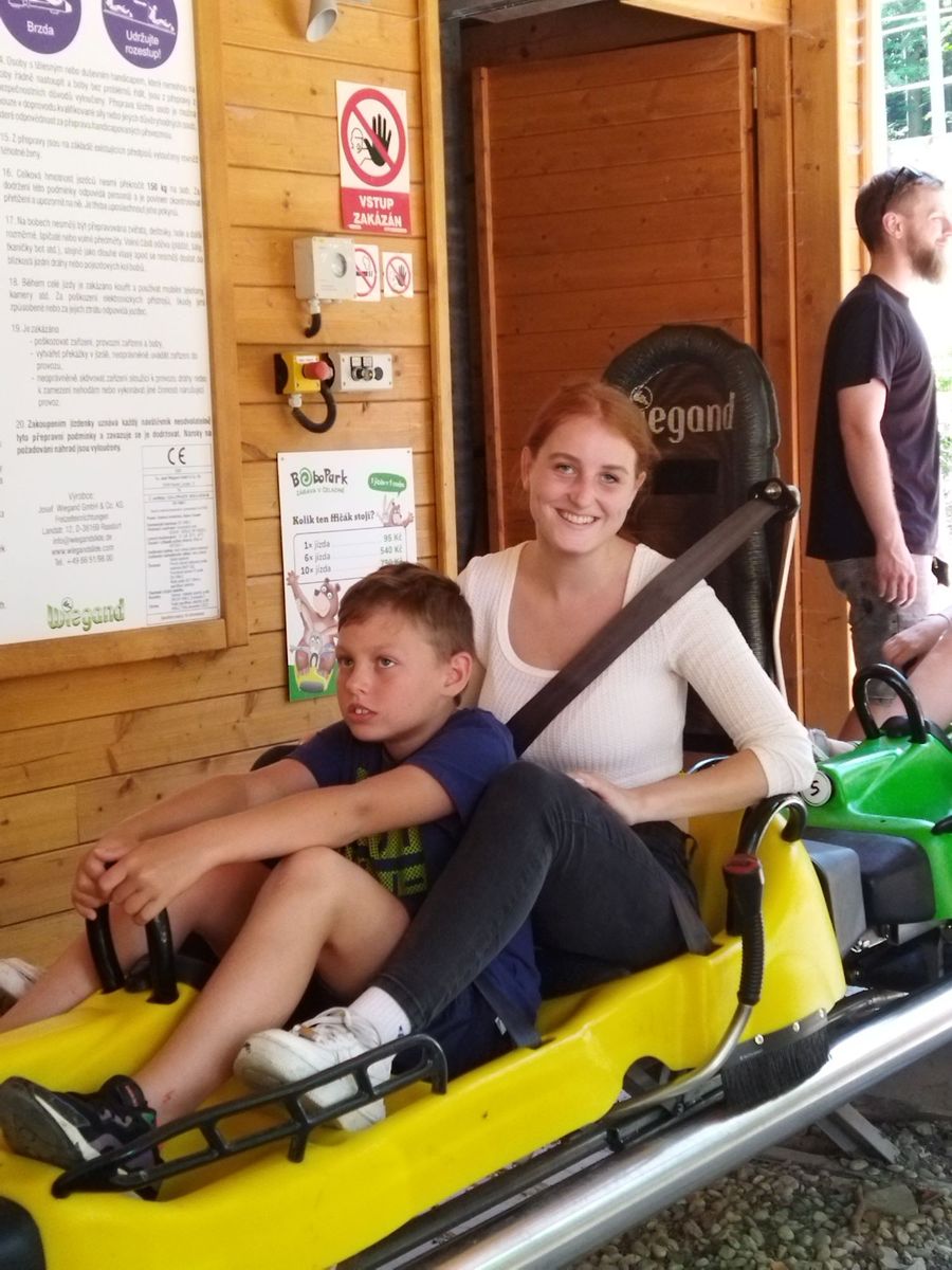 V krásném prostředí si děti užily jízdu rychlou i pomalou, jak měl kdo odvahu. Mladší se trochu bály, a proto jim byli velkou oporou ti starší, kteří si je brali jako své spolujezdce. Všem pak pěkně vyhládlo, a proto se všichni nasvačili a jeli jsme domů. Na úplný závěr nás ještě osvěžil letní déšť, ale to vůbec nevadilo. Myslím, že dnešní den jsme si hezky užili.