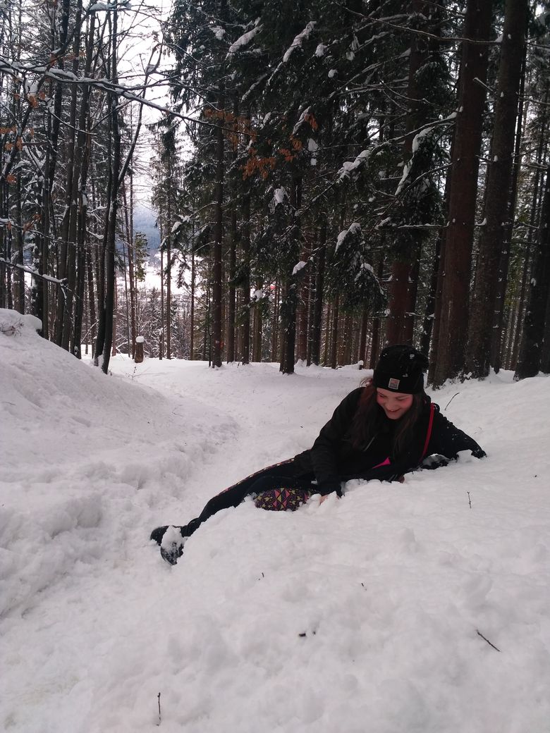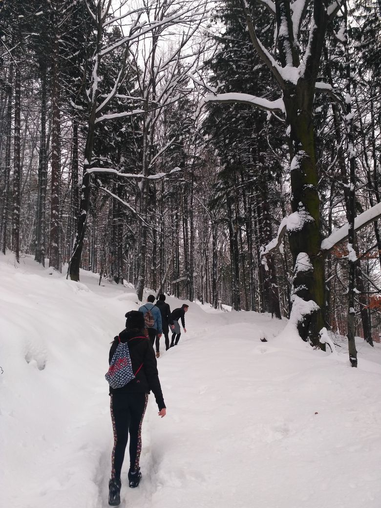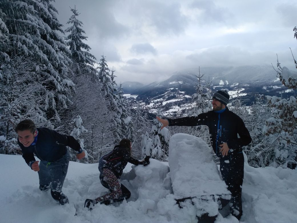 Nicméně děti jsou už na sportovní výkony zvyklé a výlet zvládají s bravurou a ještě si po cestě užívají radovánek spojených s množstvím sněhu.