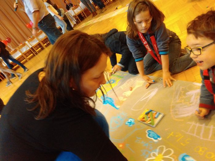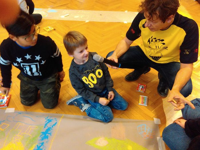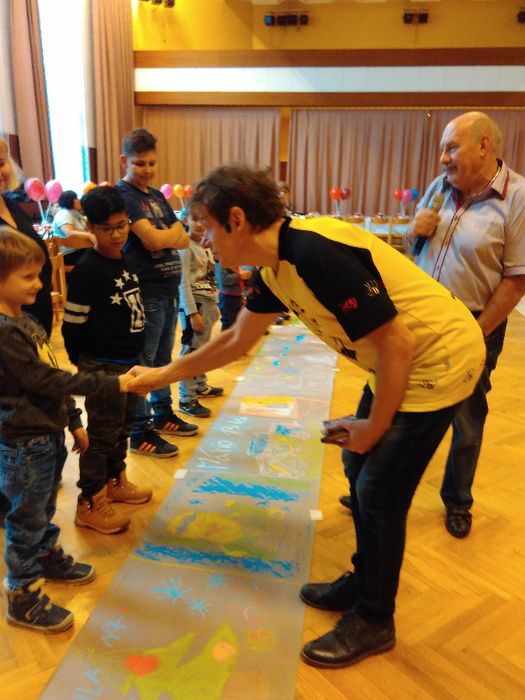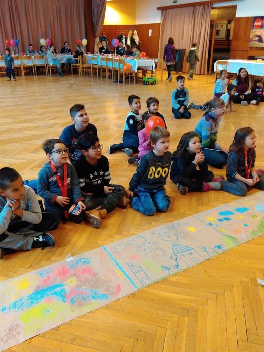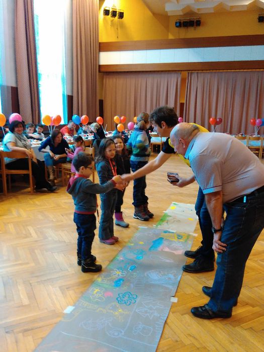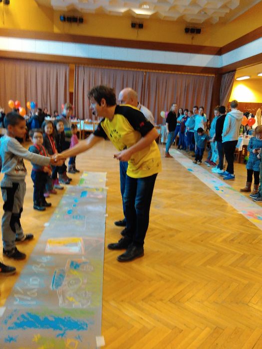 Hned po příjezdu nás pořadatel velmi mile přivítal a usadil k bohatě prostřenému stolu. Děti se nenechaly pobízet a hned se posilnily koblížky a chlebíčky, aby zvládly pečlivě připravený program, který na ně čekal. Zábavu rozproudil ilustrátor Adolf Dudek, jenž si pro děti nachystal vtipné vystoupení, do kterého je také zapojil. Po velmi zdařilém zábavném, ale i naučném pásmu se mohli projevit kreslířsky i účastníci akce. Na papírových pruzích umístěných v sále společenského domu si každý našel své místečko, kde nakreslil křídami to, co jej zrovna napadlo. Nejzdařilejší obrázky byly odměněny sladkou odměnou. No a jak to tak bývá, po práci J následuje zábava. S velkou energií, a především silným hlasem přímo mezi nás vplula Heidi Janků. Tančila s dětmi, nechávala je zpívat do mikrofonu, ohodnotila nejsnaživější tanečníky. A hlavně nešetřila úsměvy a trpělivě se se všemi fotila.