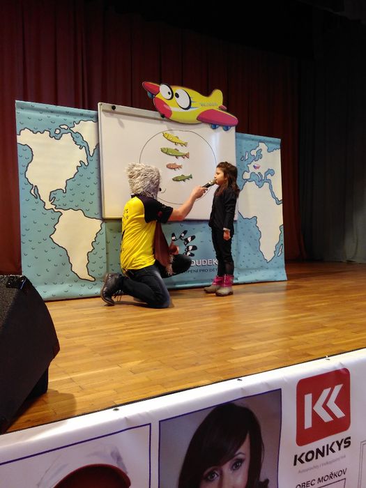 Po krátké pauze a vynikajícím obědě v přilehlé restauraci jsme se opět ponořili do víru zábavy. Na scénu přichází klaun Hopsalín a s ním je o legraci postaráno. Jeho vystoupení je prošpikováno vtípky, soutěžemi a tanečky. Opět nezůstává nikdo bez malého dárečku či sladké odměny.