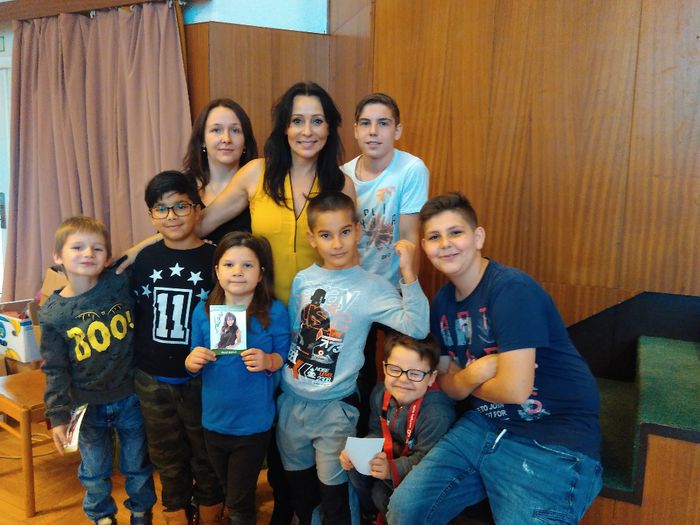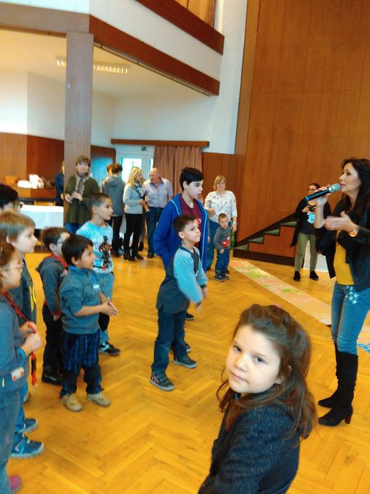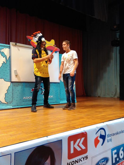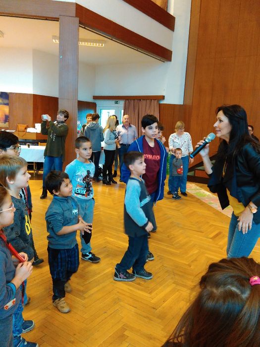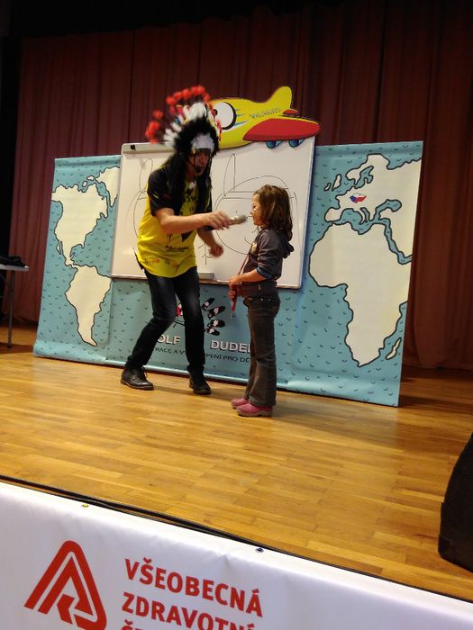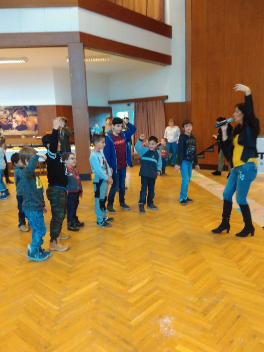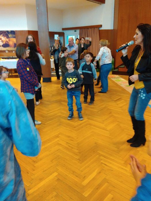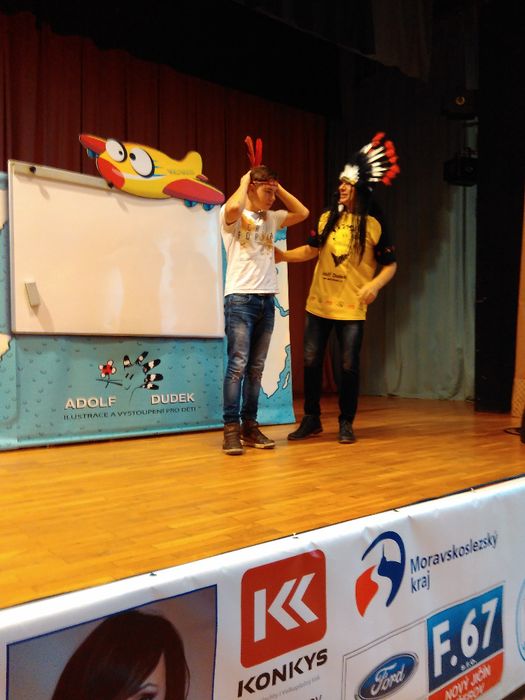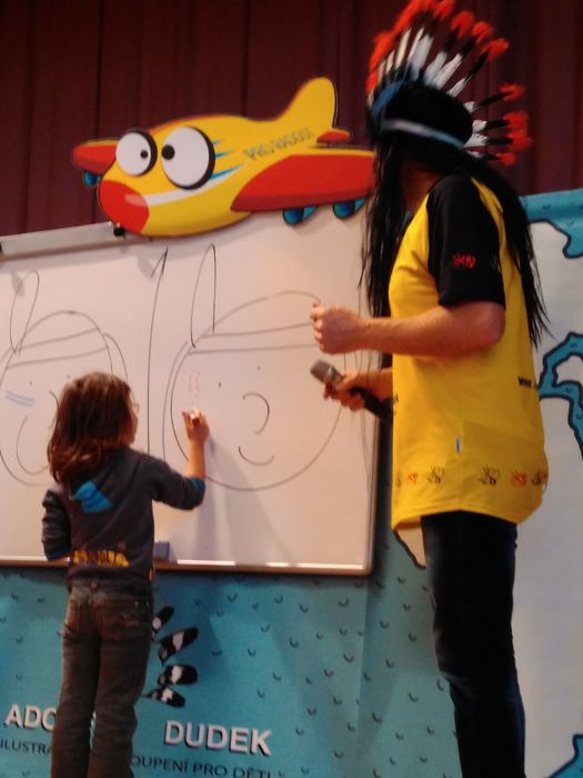 Hned po příjezdu nás pořadatel velmi mile přivítal a usadil k bohatě prostřenému stolu. Děti se nenechaly pobízet a hned se posilnily koblížky a chlebíčky, aby zvládly pečlivě připravený program, který na ně čekal. Zábavu rozproudil ilustrátor Adolf Dudek, jenž si pro děti nachystal vtipné vystoupení, do kterého je také zapojil. Po velmi zdařilém zábavném, ale i naučném pásmu se mohli projevit kreslířsky i účastníci akce. Na papírových pruzích umístěných v sále společenského domu si každý našel své místečko, kde nakreslil křídami to, co jej zrovna napadlo. Nejzdařilejší obrázky byly odměněny sladkou odměnou. No a jak to tak bývá, po práci J následuje zábava. S velkou energií, a především silným hlasem přímo mezi nás vplula Heidi Janků. Tančila s dětmi, nechávala je zpívat do mikrofonu, ohodnotila nejsnaživější tanečníky. A hlavně nešetřila úsměvy a trpělivě se se všemi fotila.