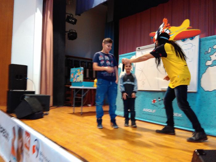 Po krátké pauze a vynikajícím obědě v přilehlé restauraci jsme se opět ponořili do víru zábavy. Na scénu přichází klaun Hopsalín a s ním je o legraci postaráno. Jeho vystoupení je prošpikováno vtípky, soutěžemi a tanečky. Opět nezůstává nikdo bez malého dárečku či sladké odměny.